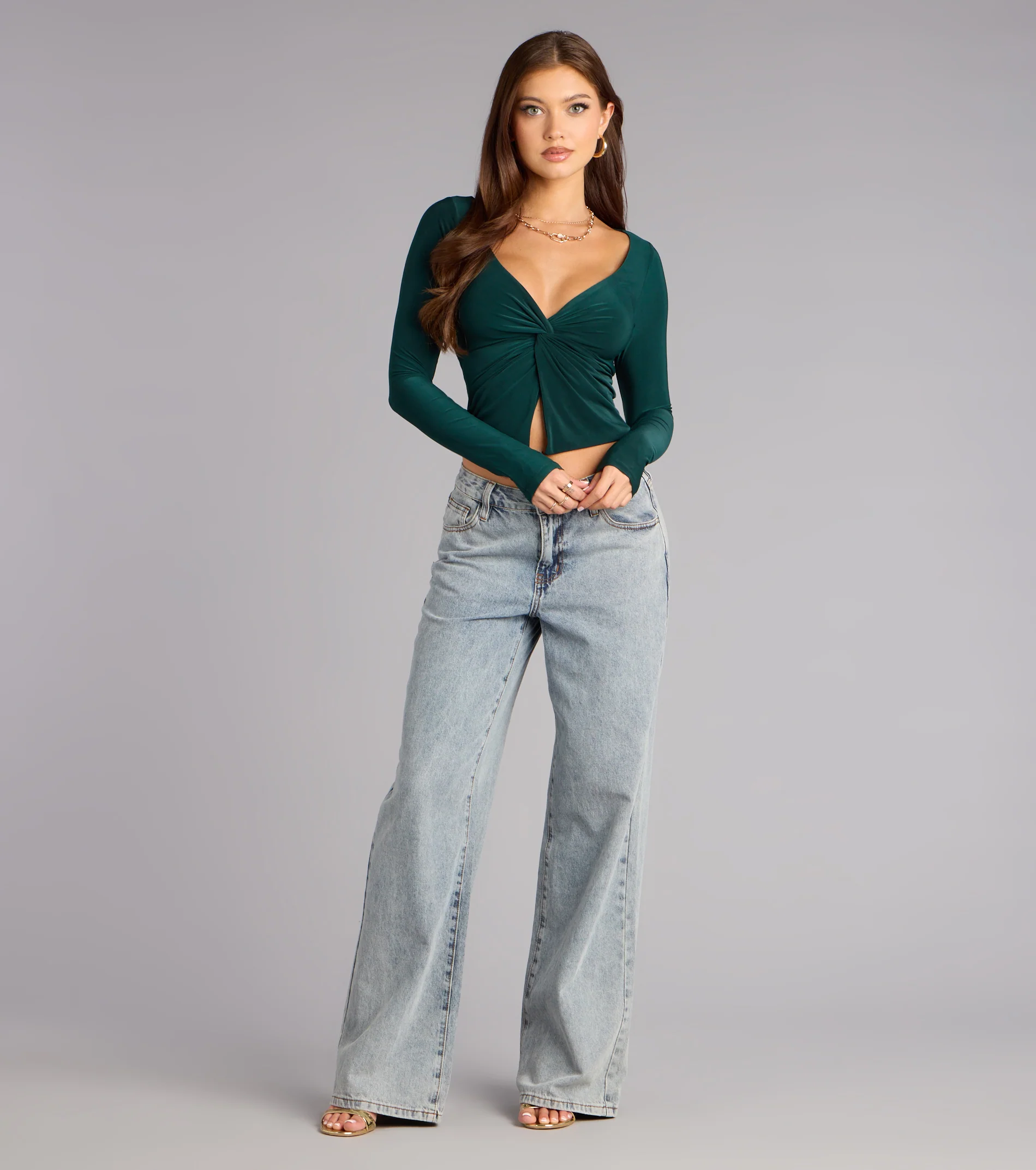 Simple, sleek, and just the right amount of bold. This twist front top hugs your shape with a soft stretch feel and deep neckline that knows how to make an entrance—day or night.